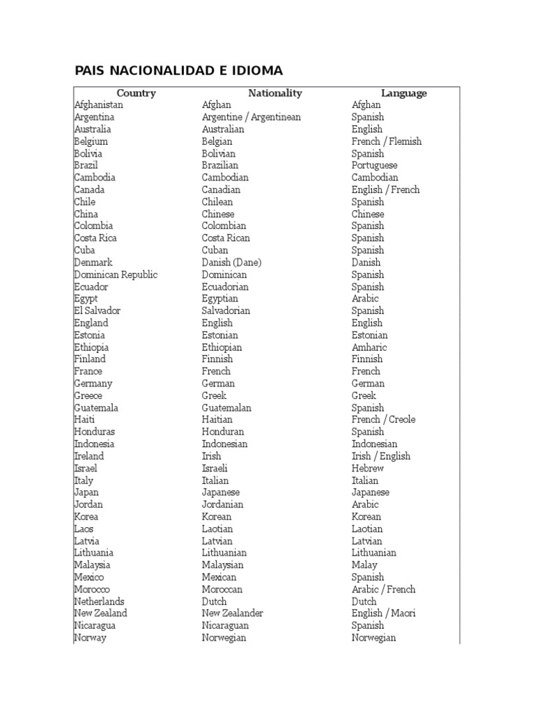 It is a formal and official word and it appears more frequently in written english. En esta ocasión una de vocabulario para aprender como se escriben los países en ingles y sus respectivas nacionalidades e idiomas. Memorizar las nacionalidades en inglés es un poco complicado, sin embargo hay ciertos trucos que nos permiten hacer de esto una tarea mucho más fácil y rápida. Las nacionalidades en inglés es algo que necesitaran conocer para poder hacer preguntas como veamos a continuación un listado en el que encontraran primero las nacionalidades en inglés de. Sin embargo, si conoces las reglas básicas para determinar las nacionalidades el proceso se te hará.